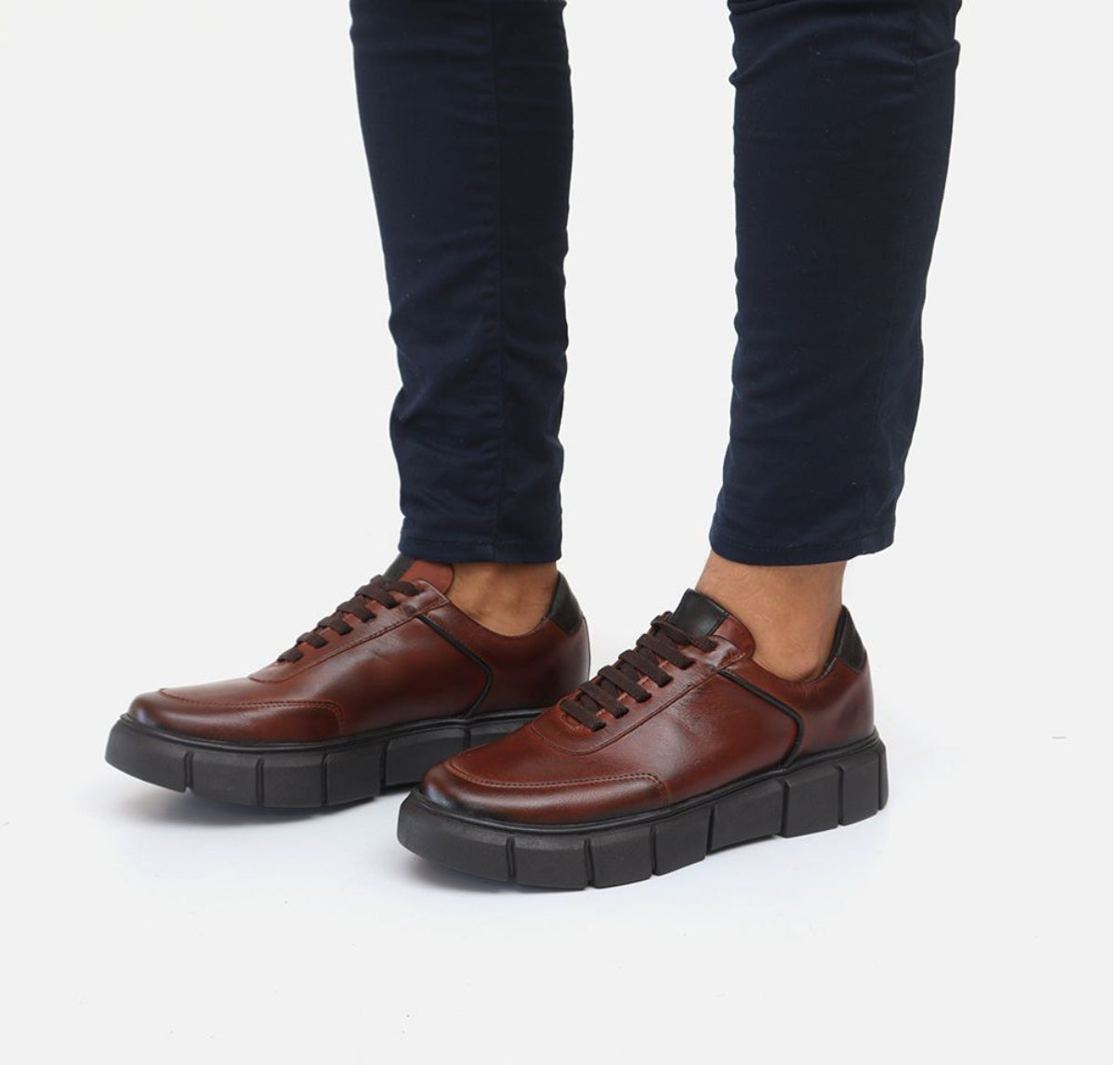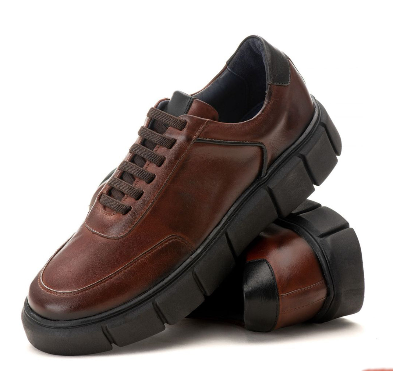Tênis Casual em Couro Marrom Tratorado — Elegância e Versatilidade em Cada Passo